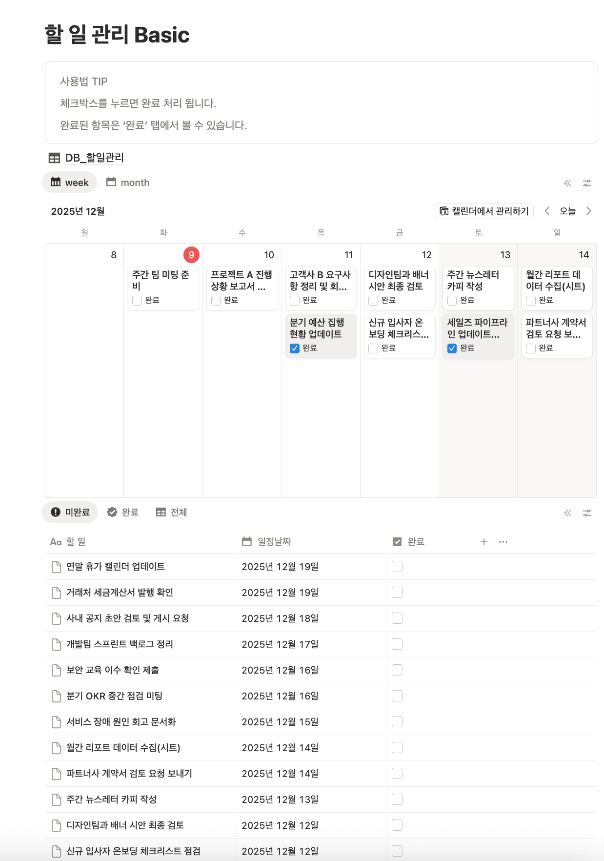 가장 기본적인 할 일 관리 템플릿입니다.