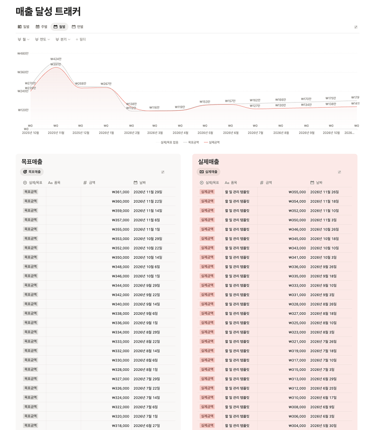 ☑️ 노션 매출 달성 트래커 템플릿